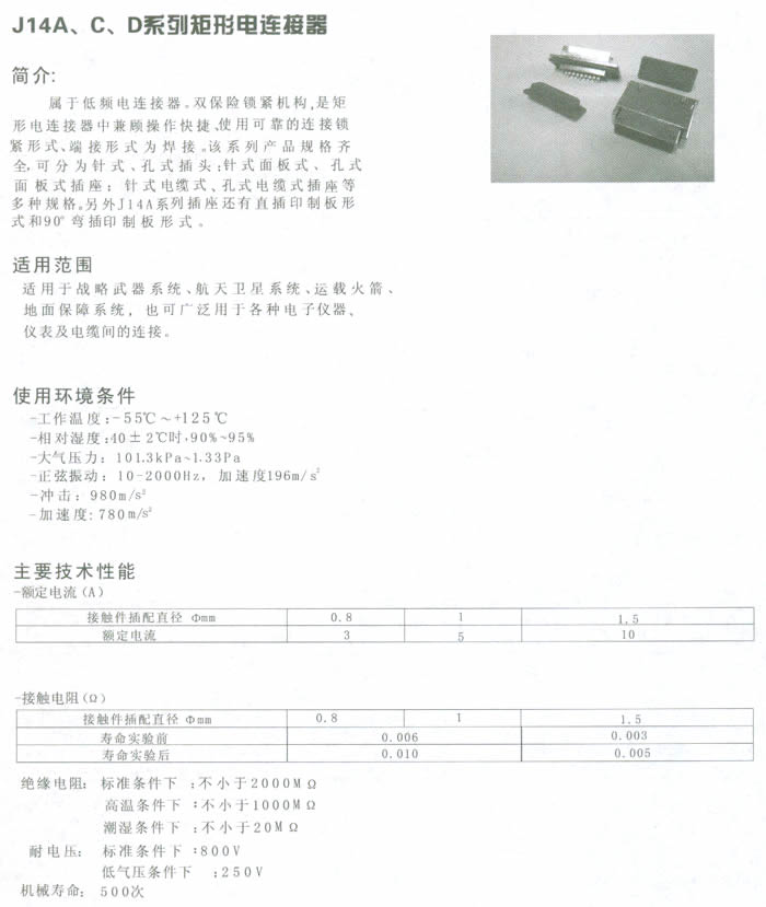 J14系列矩形電連接器